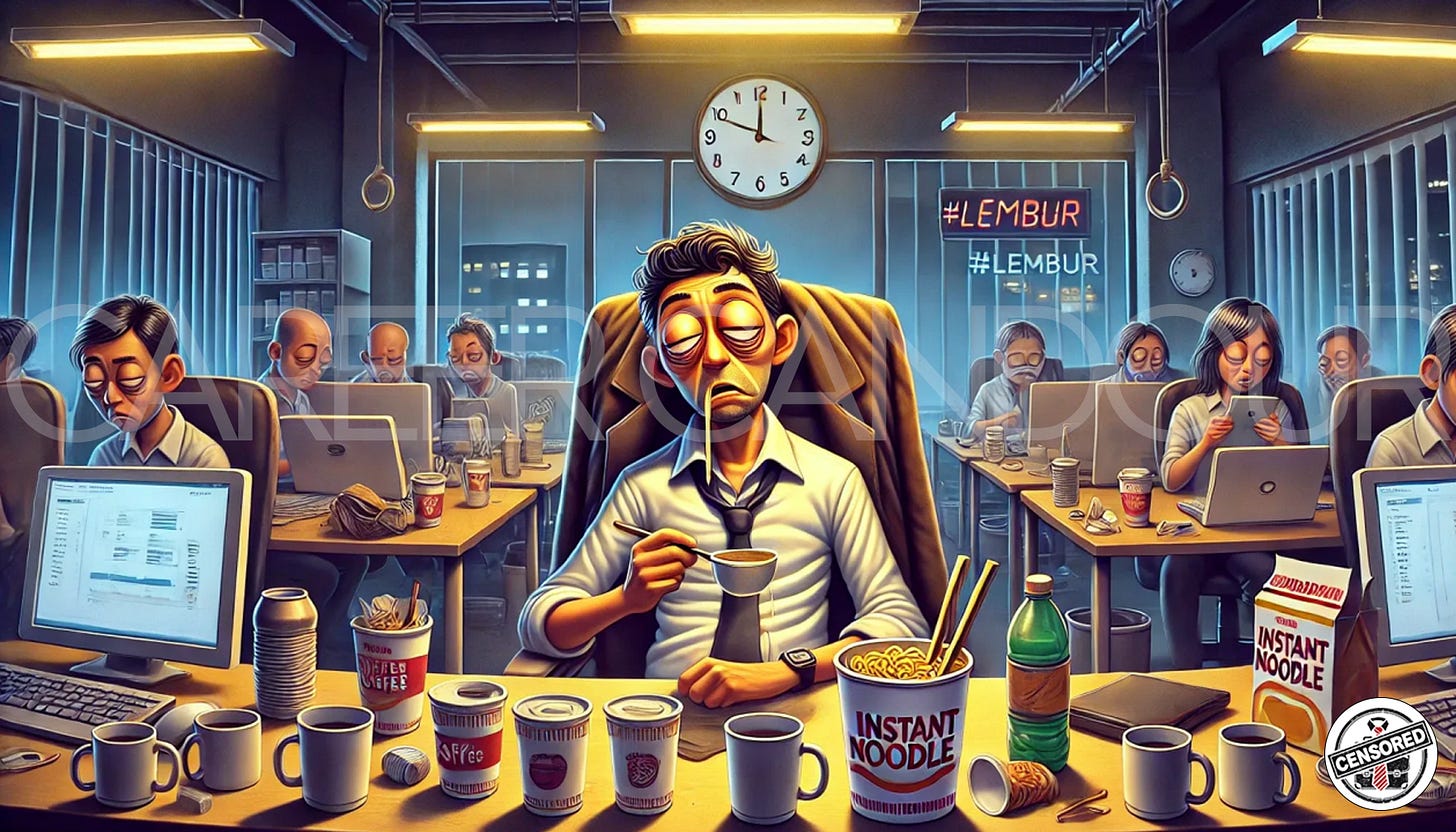 After hours of screen-staring and slowly wilting at their desks, Indonesian workers are finally rewarded with a light at the end of the lembur tunnel: “makan malam lembur,” or overtime dinner. It’s the reward for hours of spreadsheet-induced suffering; a feast of instant noodles, bags of fried snacks, and coffee brewed from beans that likely saw fresher days. Imagine a blend of the Last Supper and a high-school cafeteria at midnight, with everything microwaved and nothing resembling real sustenance.